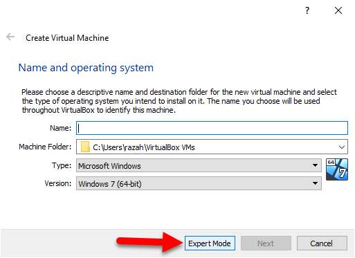 Expert Mode 3. Give a name to your virtual machine, select a folder for installation, the type should be Mac OS X, version should be Mac OS X (64-Bit). From the below, you have to select the second option which is Create a virtual hard disk now and finally click on Create.