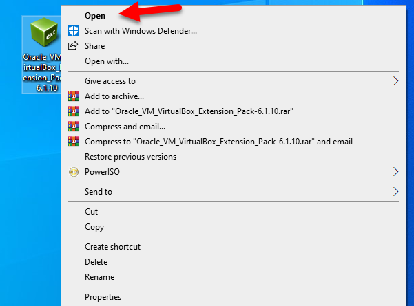 1. Once you installed VirtualBox Extension on your PC, make sure to right-click on it and click Open.