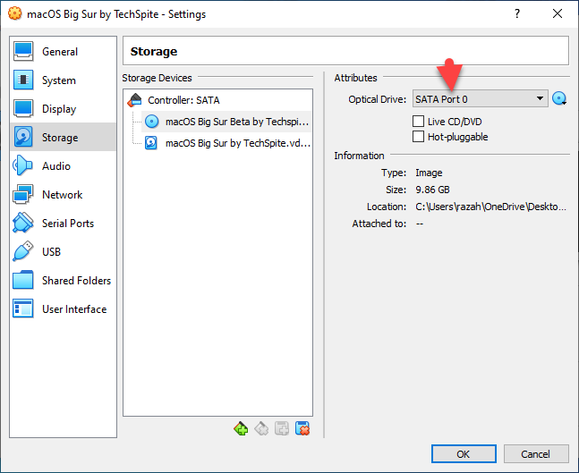 Add macOS Big Sur 4. Your macOS Big Sur ISO file should on the top and disk must in down. If your disk is on the top then it won’t boot up macOS Big Sur. You have to change the SATA port number to 0.