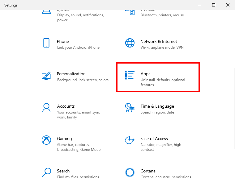 Settings In the Settings window, you will see several options. As you might know that WordPad comes in apps. You need to click on the Apps from them.