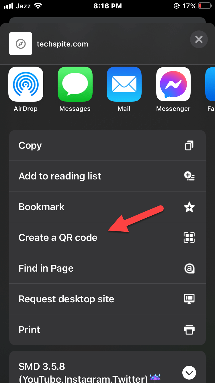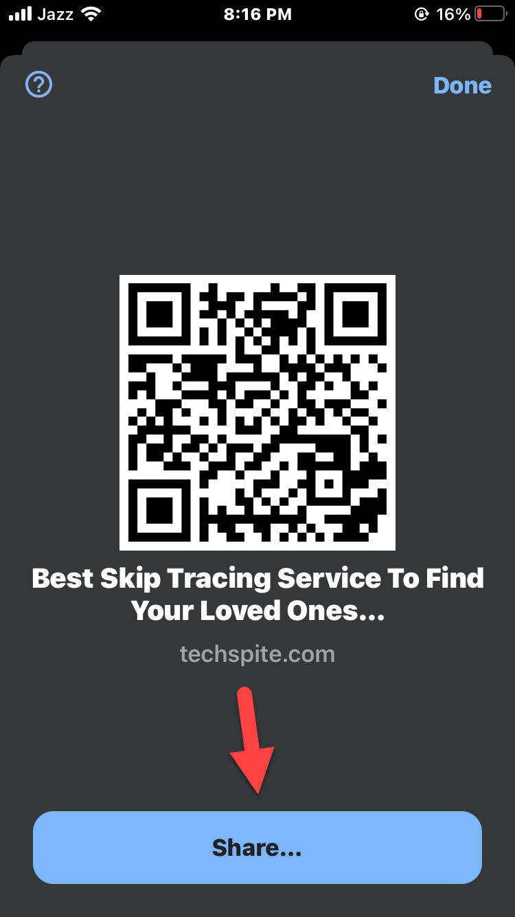 Step 3. Next, click on the Share icon then tap on the Create a QR Code.