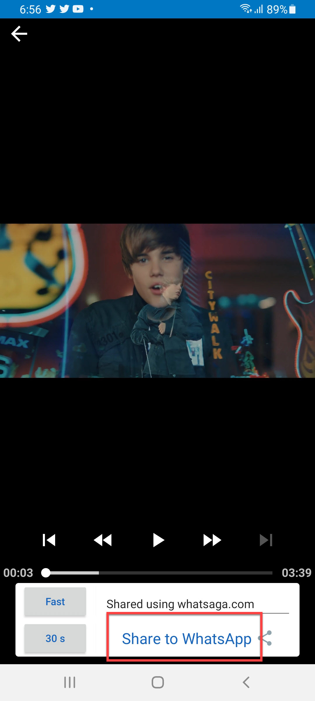 Step 3. Once you select that video that clicks on the Share to WhatsApp after that it will much time to load the video completely.