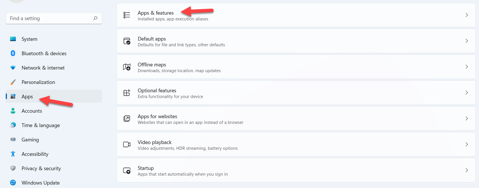 Step 2. Now, head towards the Apps from the left side then click on the Apps & Features.