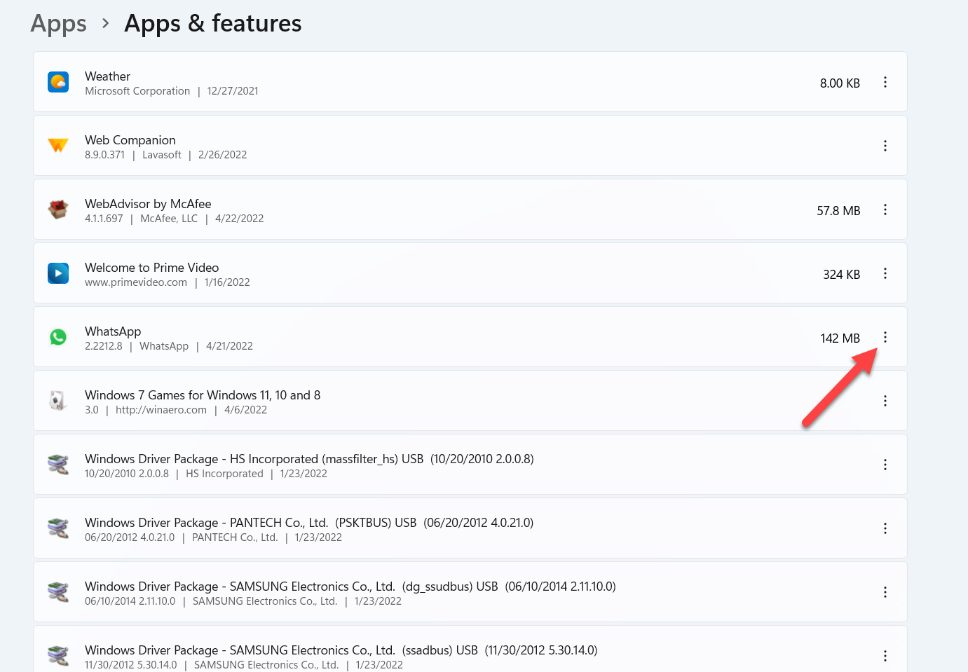 Click on the Apps & Features Step 3. Here you have to find the WhatsApp app and then tap on the Three Dots after that select Advanced Options.