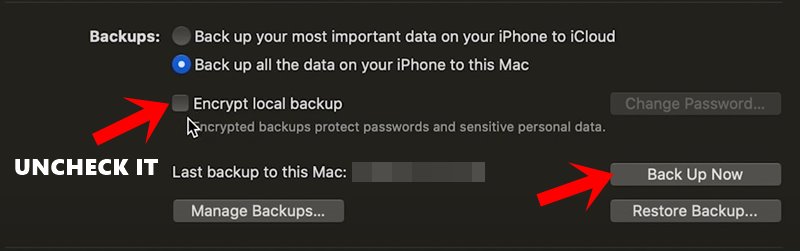 Uncheck the Encrypt Local Backup Step 4. Once the backup is created successfully then you could access the file via the following location.