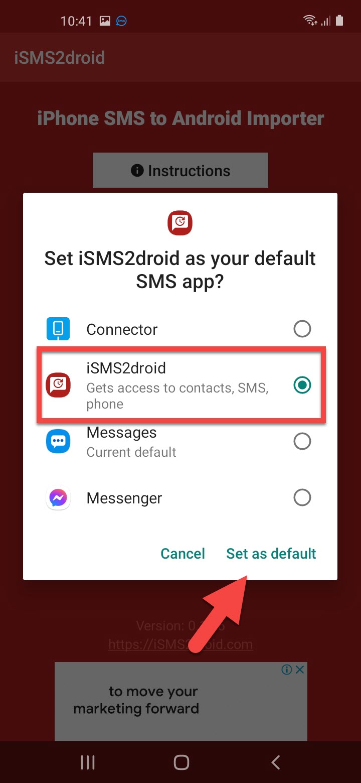 Click on the Import Messages Step 8. Check the iSMS2droid then click on the Set As Default.