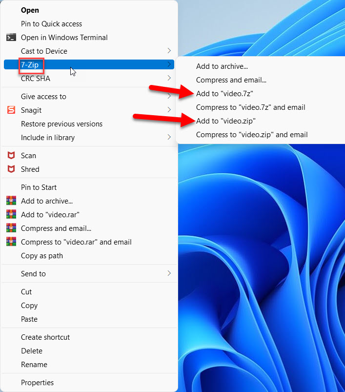 Select 7-Zip Finally, your files or folders are successfully zip or compress.