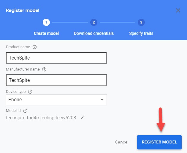 Click on the Register Model Step 8. Fill in the section of Product name, Manufacturer name, or Device name once you fill it then click on the Register Model.