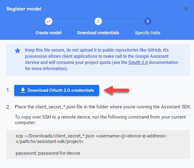 Click on the Register Model Step 9. So, when you click on the register model then you want to download credentials. Click on the Download OAuth 2.0 Credentials.