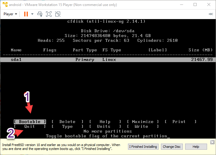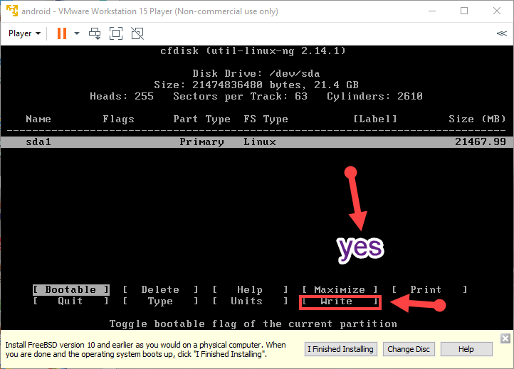 Select the write option then type yes Step 12: After typing yes then select the bootable option then quit that by pressing enter.