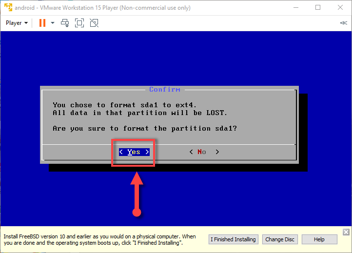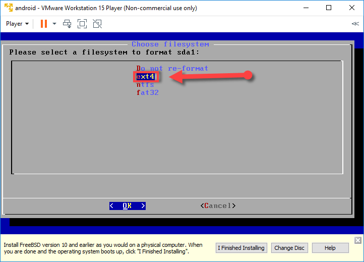 select ext4 Step 14: A window will be open then you will be asked you choose to format sda1 to ext4 simply click on the yes.