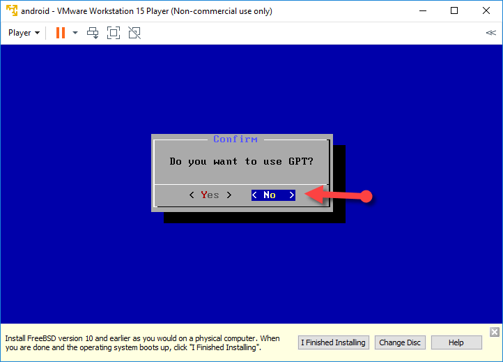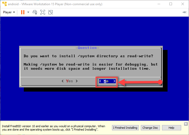 Installation – Install Android-x86 to harddisk Step: Click on the no option.