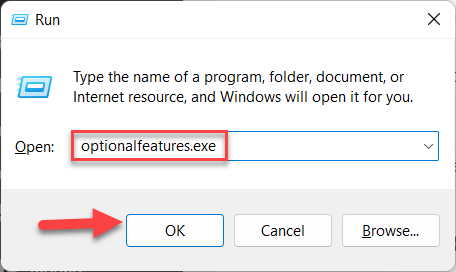 Step 1. First of all, press and hold Windows + R to open the Run after that type optionalfeatures.exe and then click on the Ok.