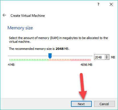 Name and Operating System Step 3. Then, increase the memory size, the recommended size 2048 MB if you want you can increase it for better quality and performance. Click Next.