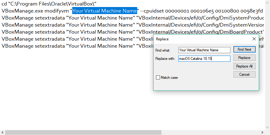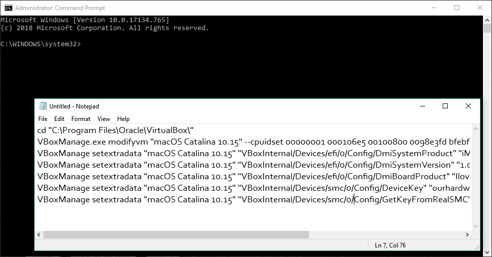 paste the code in CMD Install macOS Catalina on VirtualBox on Windows