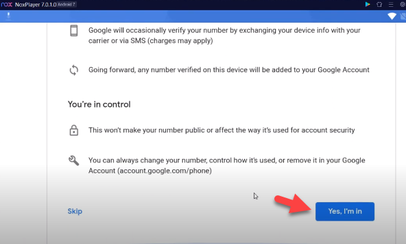 Tap on the Yes, I’m In Step 5. Click on the I Agree to accept the terms and conditions of Google.