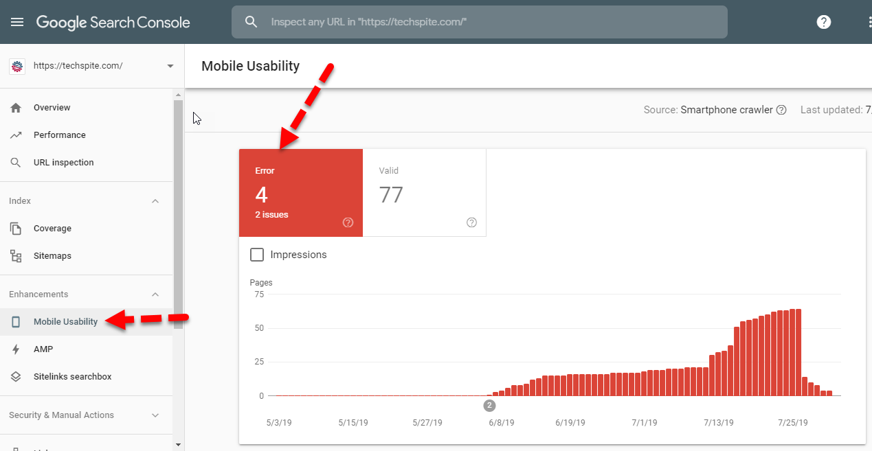 To check the Mobile Usability Issues you can direct go with the link on your Gmail. Or direct click on the Google Search Console and enter the email which is connected with your website. You will have many options at the left side oy your screen when you get login into your Google Search Console. So, you need to click on the Mobile Usability under the on the Enhancement tab which is located at the left side of Google Search Console. Then you can find and notice each error which is in Mobile Usability. Read the errors which you will get in Mobile Usability then we will go toward fixing it.