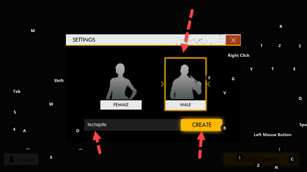 Start Game Step 6. Therefore, Choose your gender then type a nickname for your game. And click on the Create.