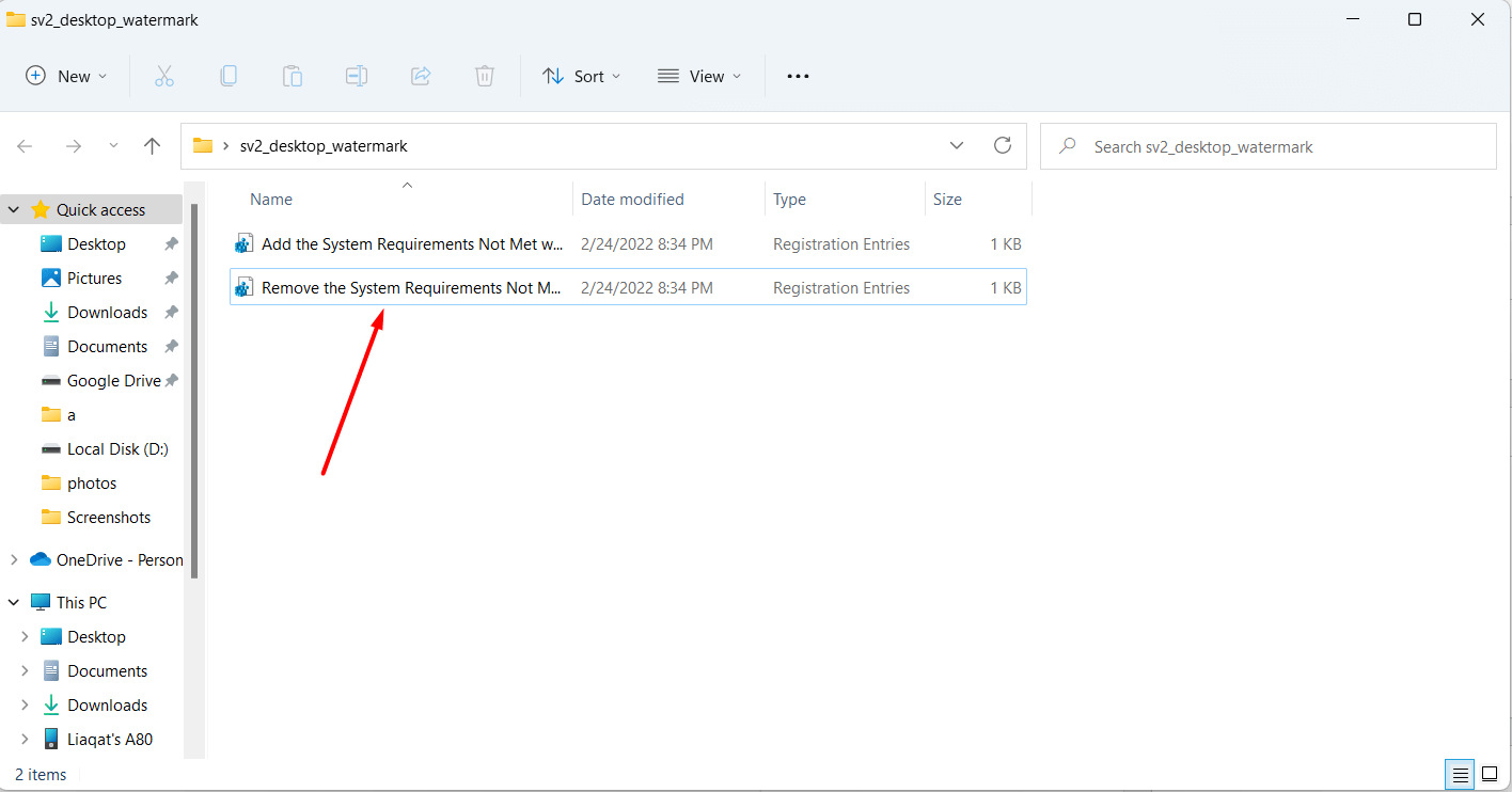 Step 3. Open the folder after you extract the files then double-click on the Remove the System Requirements Not Met Watermark. reg after that it will ask to make changes simply agree on it.