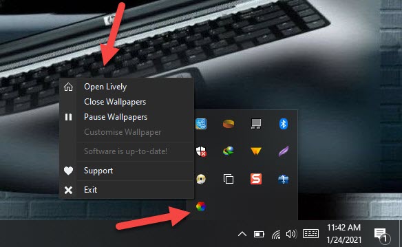 Click on the Show Hidden Icon Step 19. Right-click on the icon of lively wallpaper then click on the Open Lively.