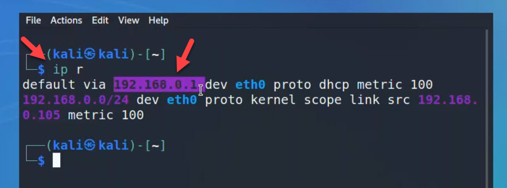 Step 1. first of all, you have to find out the default gateway of the router. Whenever you change the default gateway, then you will not able to connect with the network. Therefore, to find out that you have to type the below command in the Terminal of Kali Linux.