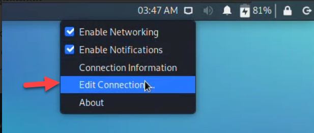 Default Gateway Step 2. Now, you must go to advanced network management settings in order to configure or set up the static IP address. To open that, right-click on the network connection and select edit connections.