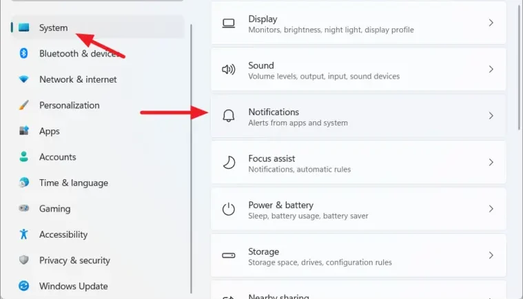 - Open Settings and then navigate to System. From there open Notifications option.