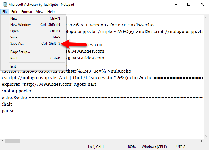 Save as Step 3. Next up, select a location for the file to save, you can choose anywhere but choose Desktop because it will easy to find out. Save the file by adding .cmd at the end of file name, for example you can write Microsoft Activator.cmd and then click on the Save option from the bottom.