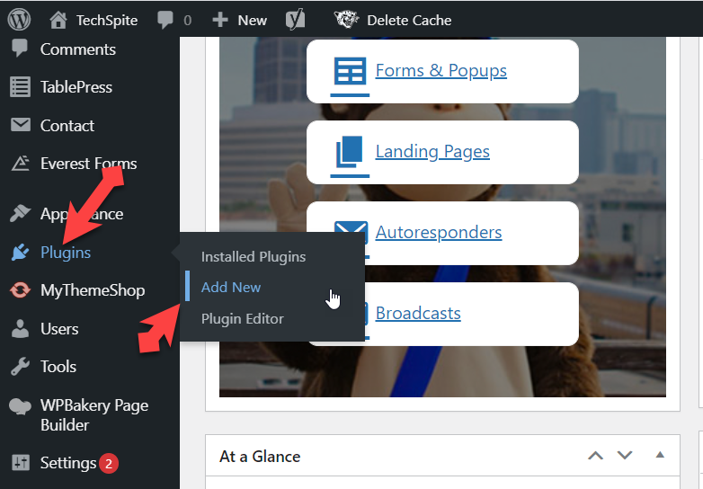 Step 1. Search on your website on Google, access to the dashboard of your website. From the left side, you may click on the Plugins and click on Add New. It is the place where you can install plugins for your website.