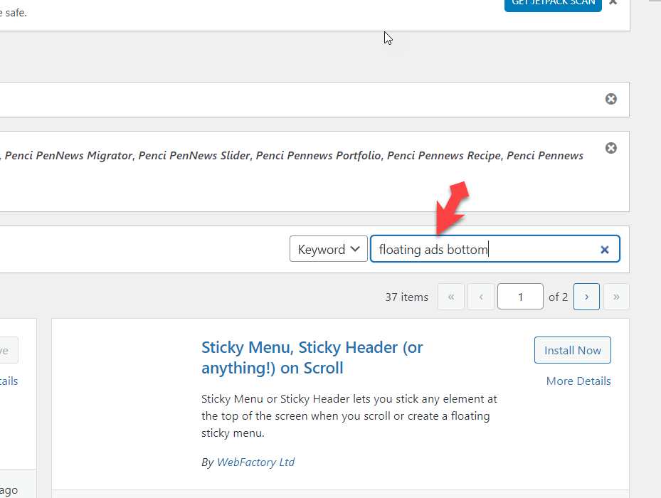 Add new plugin Step 2. You will have a search bar on that window. You have to type Floating Ads Bottom.