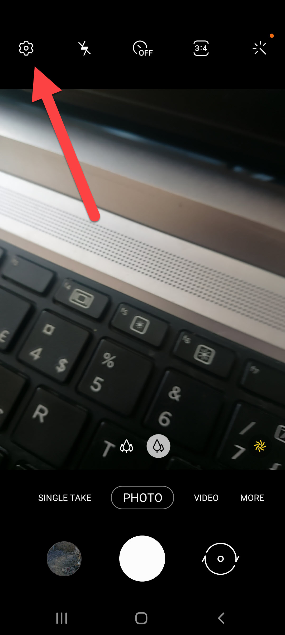 Step 1. First of all, open the Camera on your device after that click on the Settings at the top left corner.