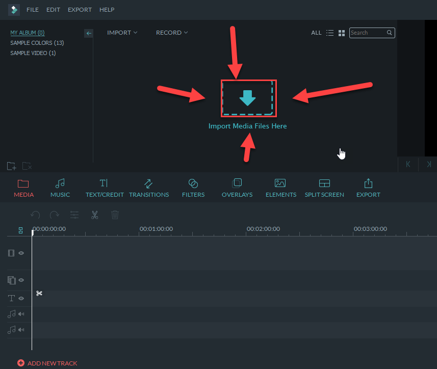 full feature mode Step 4: After launching Filmora then click on the import media files here which is in the screenshot below.