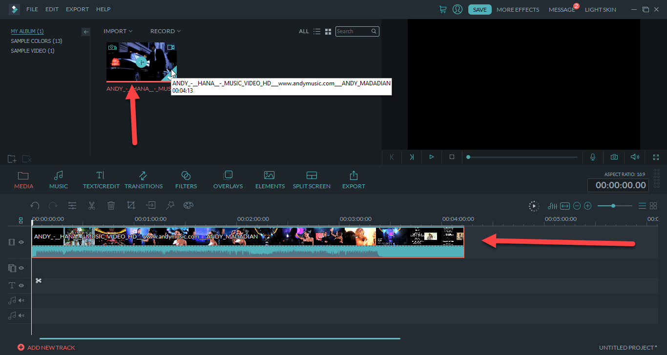 choose a Step 6: So click on the plus sign which is at the center of video or you can simply drag and drop the video in your timeline.