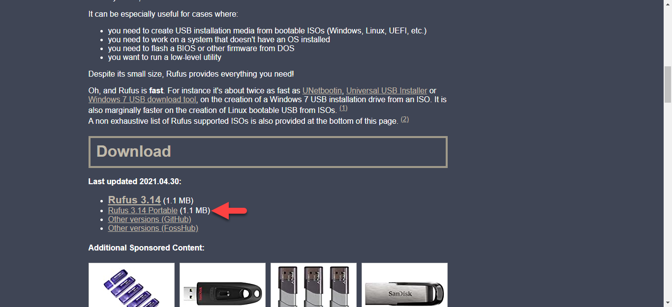 Step 3. Once the Rufus website is open then scroll down after that download the portable version of Rufus.