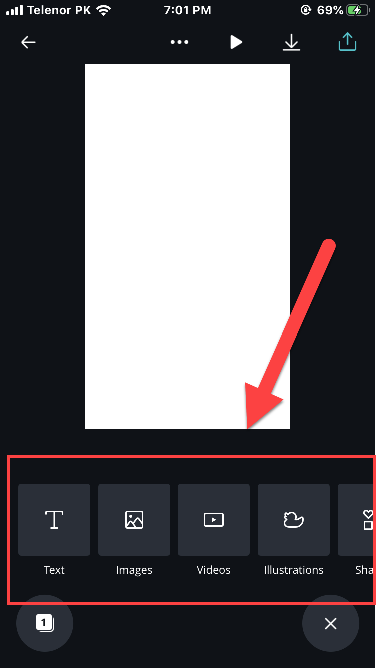 Tap on the + icon Step 6. Now, you have to give a lovable design by using the attractive templates, a beautiful background, photos, and text from the below tools.