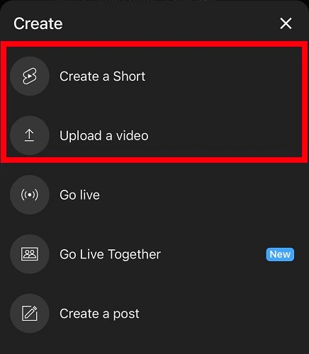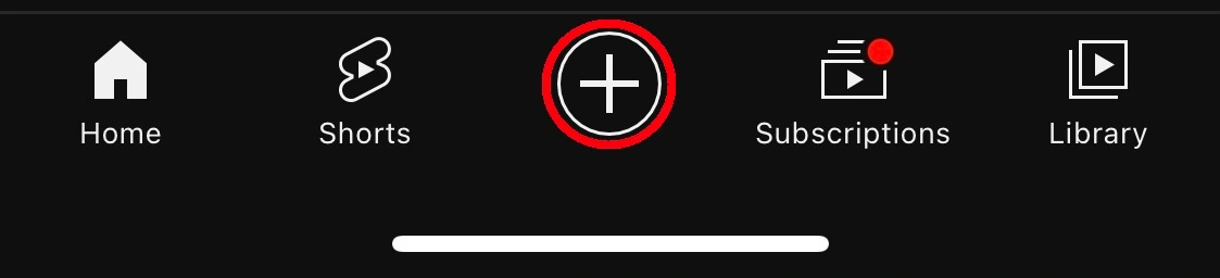Step 1. Open YouTube and click on the ‘+’ icon at the bottom center of your scree.