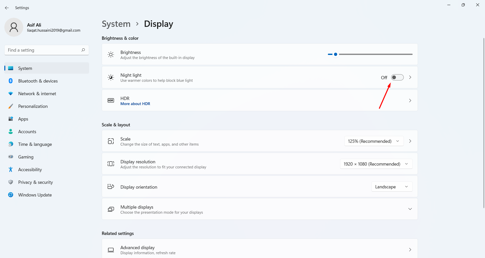 Toggle on Night Light Step 3. Now, if you want to set the timer of enabling blue filter then turn on Schedule Night Light then click on the Arrow. Here you can select the schedule for the and you can use the default time that the system will give you.