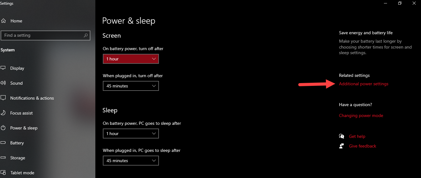 Click on the Open Step 2. When the Power & Sleep is open the click on the Additional Power Settings at the right side of your screen.