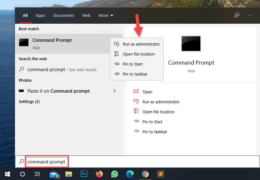 Step 1. First of all, open the Start Menu then type Command Prompt after that right-click then click on the Run As Administrator.