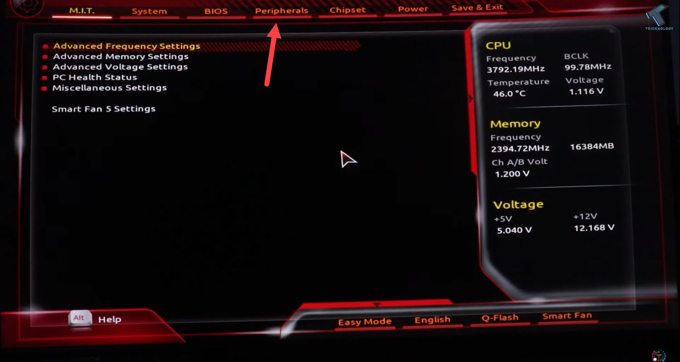 Click on the Enter Setup Step 3. Then you need to go to the Peripherals from the menu tab.