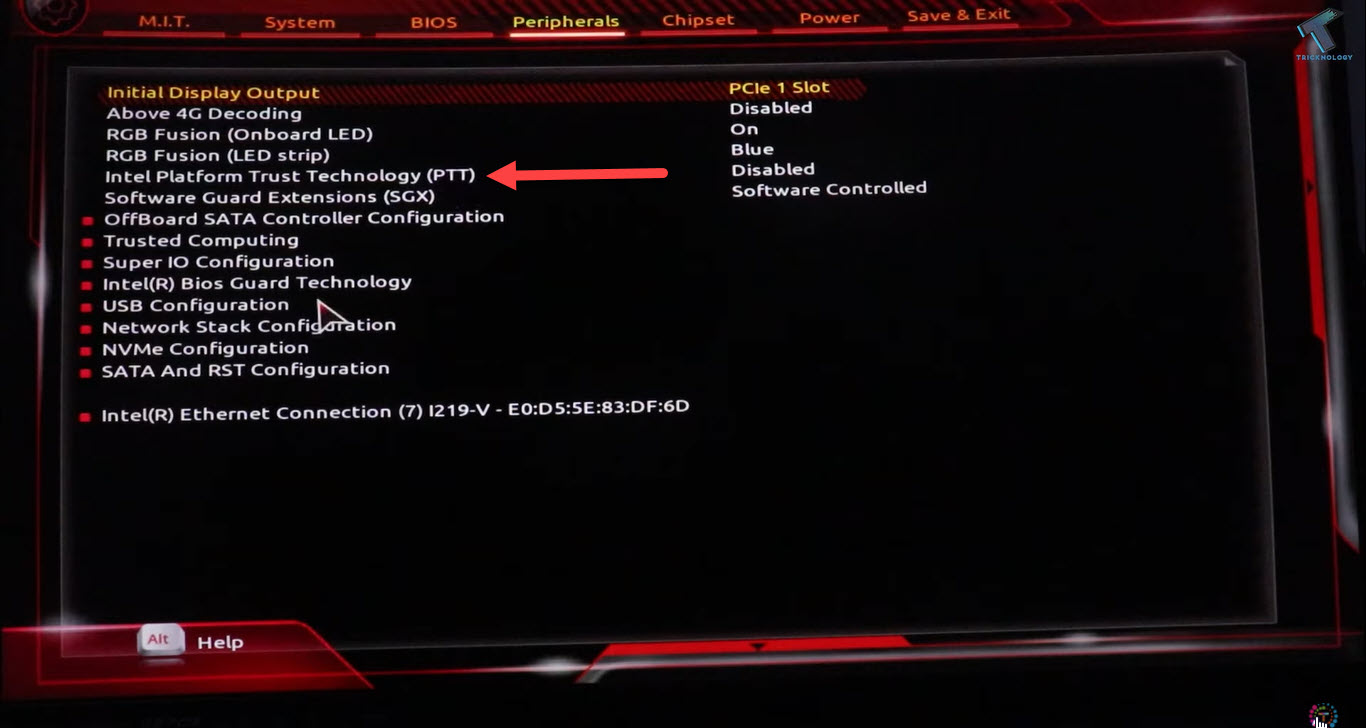 Go to the Peripherals Step 4. When the peripherals tab is open then if you are an Intel user after that you will get Intel Platform Trust Technology (PTT) simply double click on it.