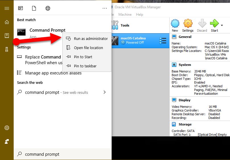 Copy and paste the Command Step 4. After that, you have to open the Oracle VM VirtualBox program and click on the operating system. Click on the Start button. This will open the macOS Mojave or Catalina virtual machine.