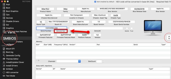 Step 1. First of all, you have to download Clover Configurator and must be the latest version of that software. Then open clover configurator on the virtual machine in which macOS is installed. After that, you have to click on the SMBIOS which is located at the left-hand side. Once you have selected the version of macOS (iMac 18,3, MacBook Pro 14,2) then Click on “Generate New”. It’ll generate a new serial number for the system definition you’ve chosen.