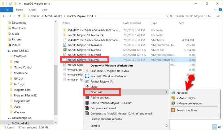 Step 1. First of all, go to the macOS Mojave or the later version of the Mac OS X virtual machine and find the VMX File extension. The exact or default location is My Documents > Virtual Machines > macOS Mojave > macOS Mojave.vmx. You have to right-click on the file and open via notepad.