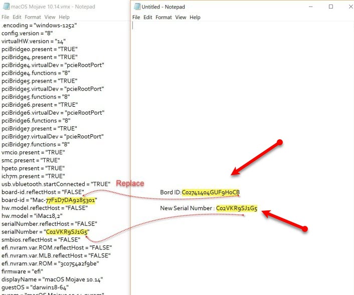 Change the serial number Step 2. Once you have successfully generated the new serial from the software. So, you have to open macOS Mojave.vmx file then add the new serial number
