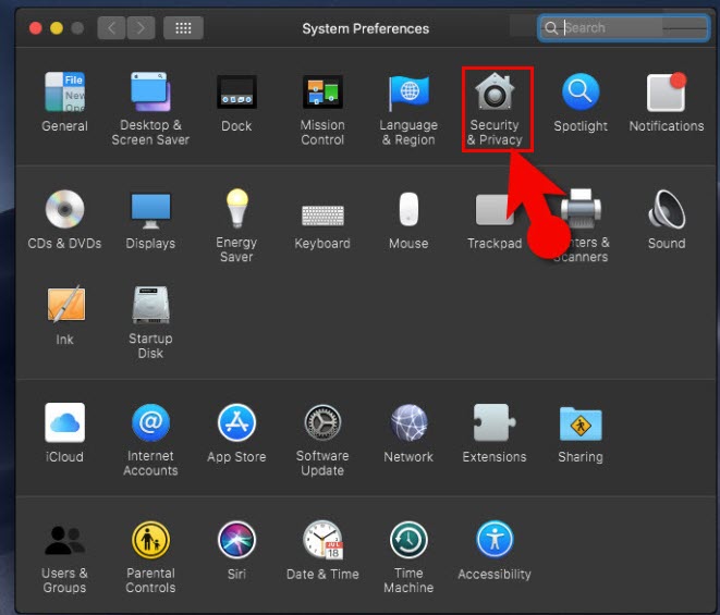 Close the application After that, you have to open Preferences and click on Security & Privacy.