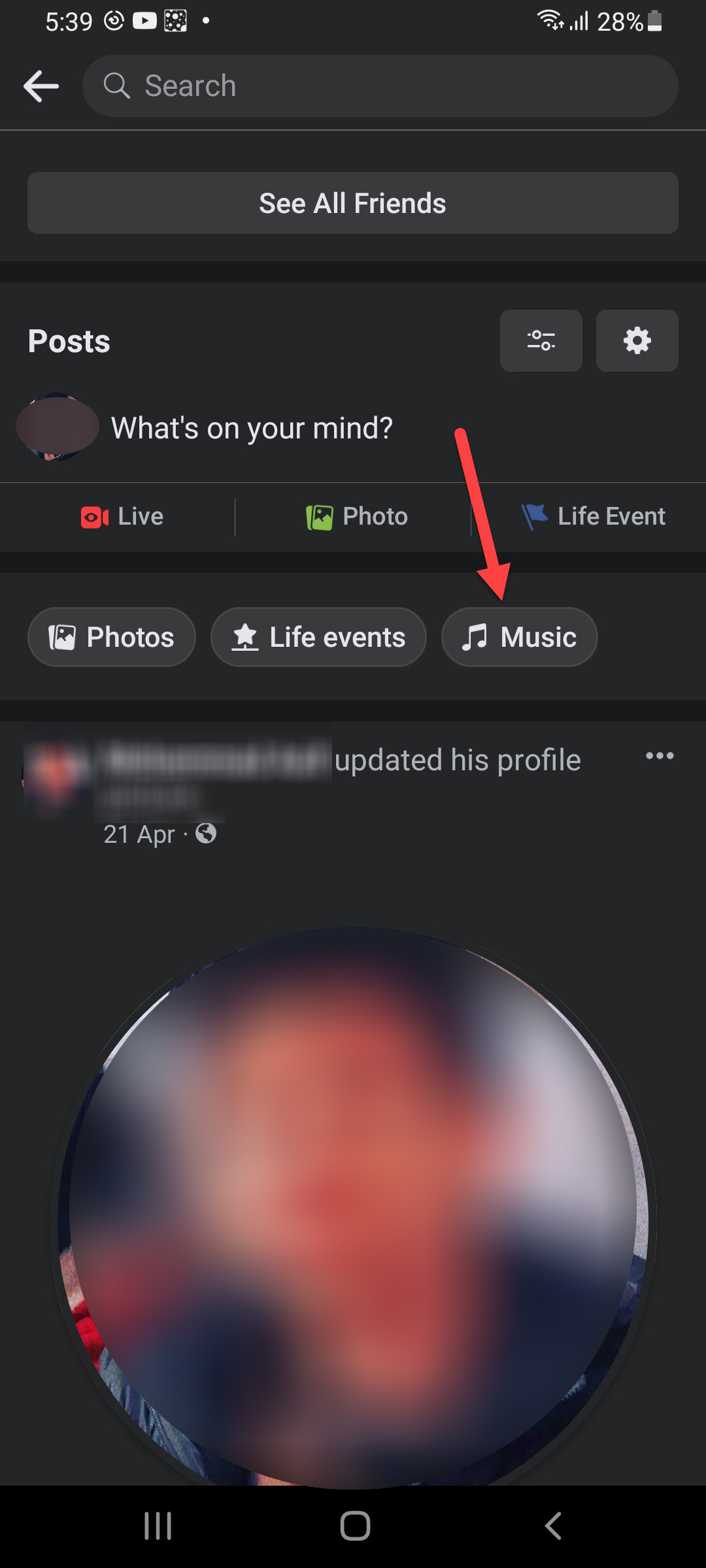 Step 2. Once the profile is open then go down to the post section after that click on the Music.