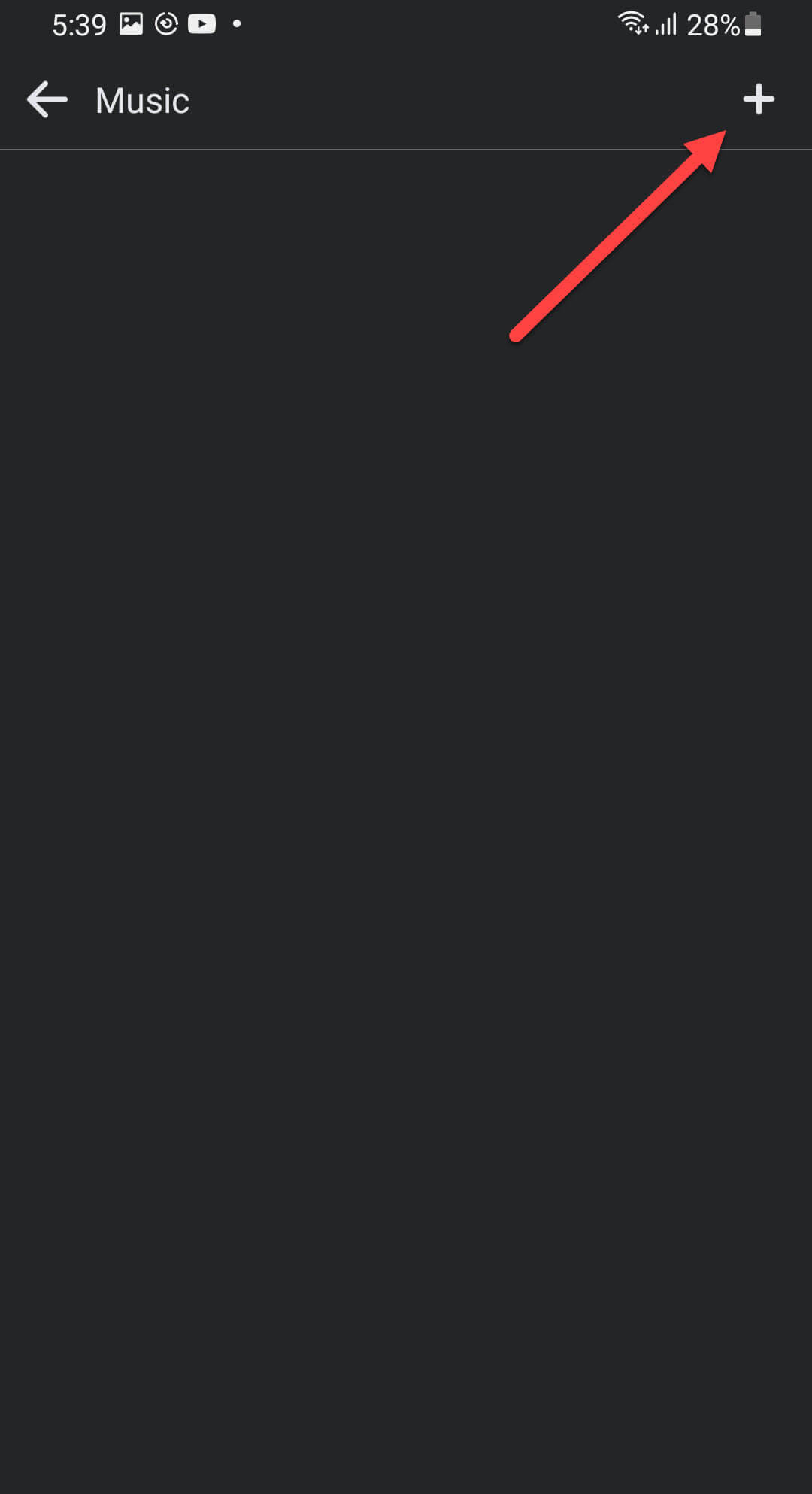 Click on the Music Step 3. Now, tap on the Plus icon at the top right.