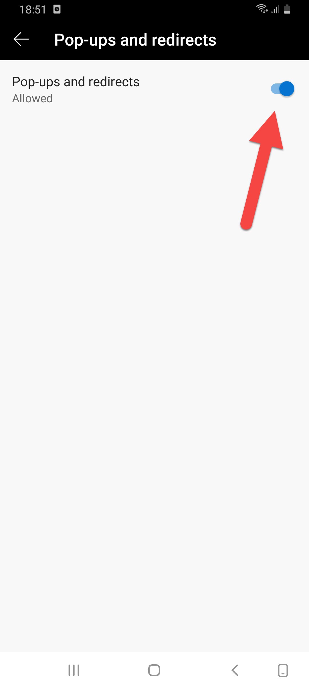 Click on the Pop-ups and Redirects Step 5. At last, turn the toggle on.