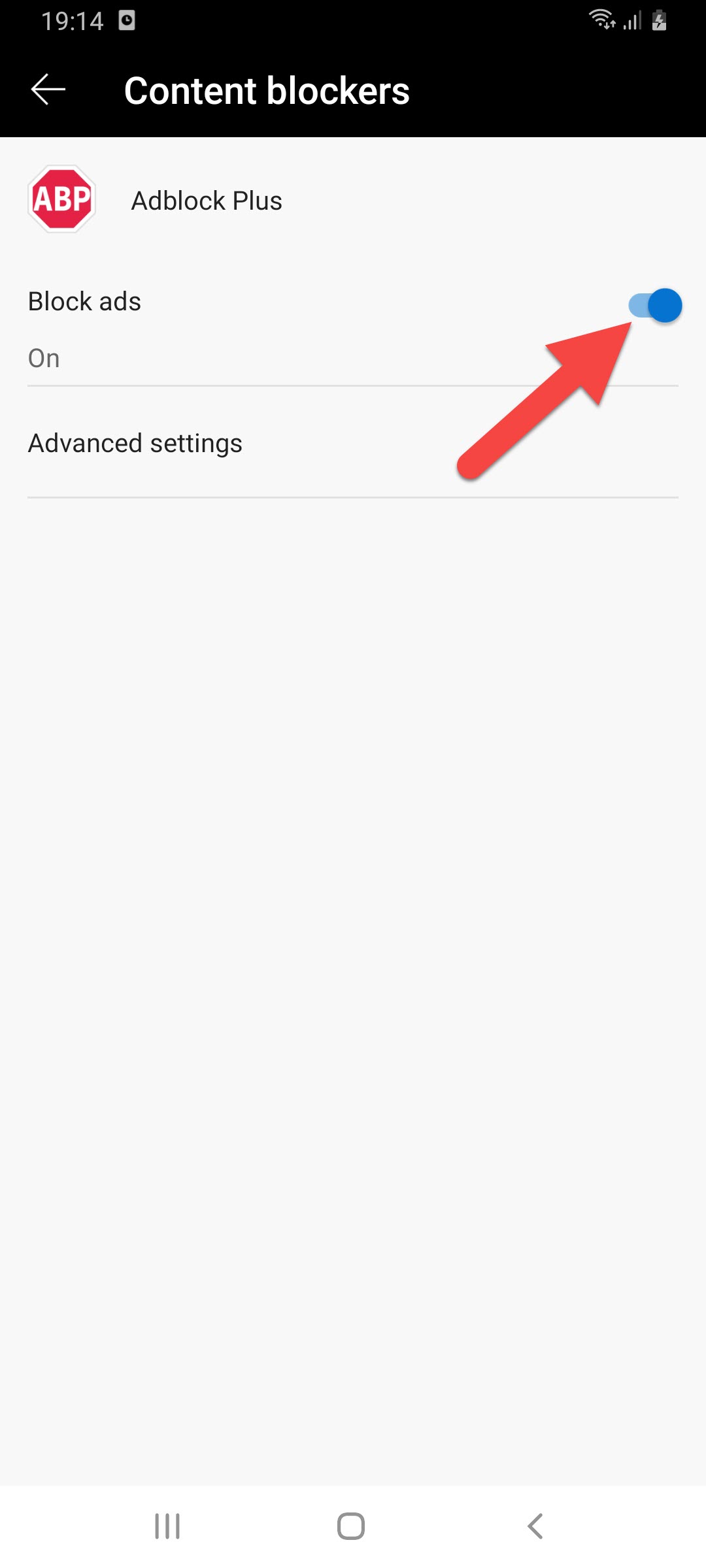 Click on the Content Blockers Step 5. Turn on the toggle of block ads then click on the Advanced Settings under the block ads toggle.